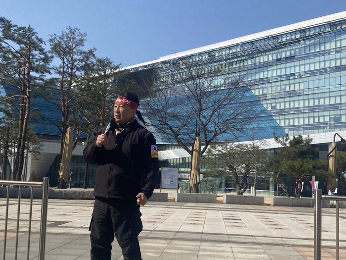 3월 4일 오후 2시, 성남시청 앞에서 진행된 집회에는 성남평화연대 회원들과 진보당 관계자들이 함께해 눈길을 끌었다.